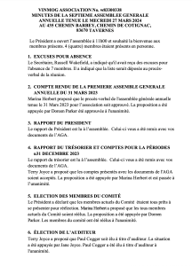 Procès-verbal de l’assemblée générale annuelle (2024) Ces documents sont le procès-verbal de l'assemblée générale annuelle 2024 de VinMog. These documents form the procès-verbal of the 2024 Vinmog annual general meeting.